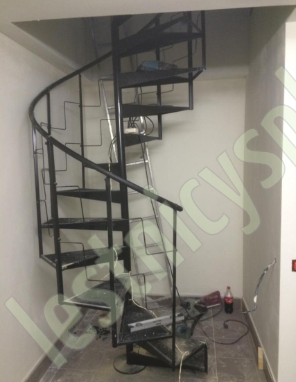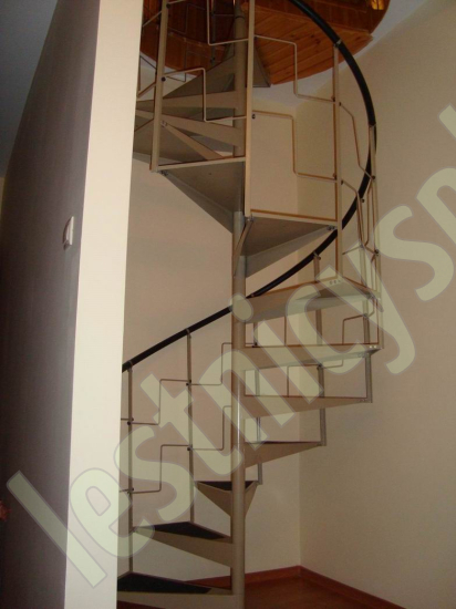 Компактная металлическая винтовая лестница КАСКАД. Ступени лестницы покрыты специальным антискользящим материалом.