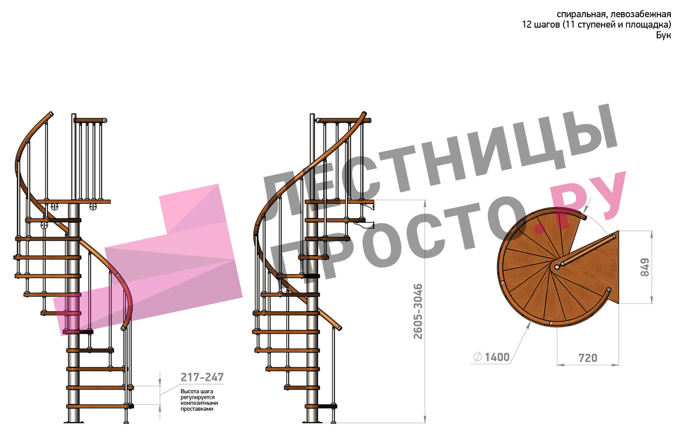 Высота лестницы 2605 - 3046 (11 ступеней) мм
