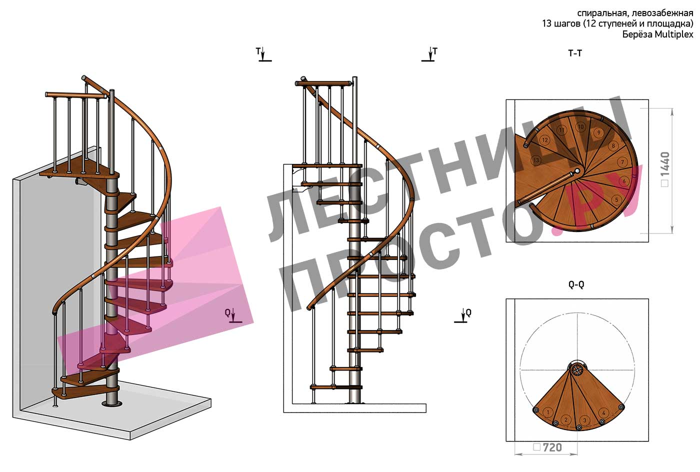 Решение об ориентации поворота лестницы принимается при сборке (комплект собирается и в правозабежную, и в левозабежную лестницу)