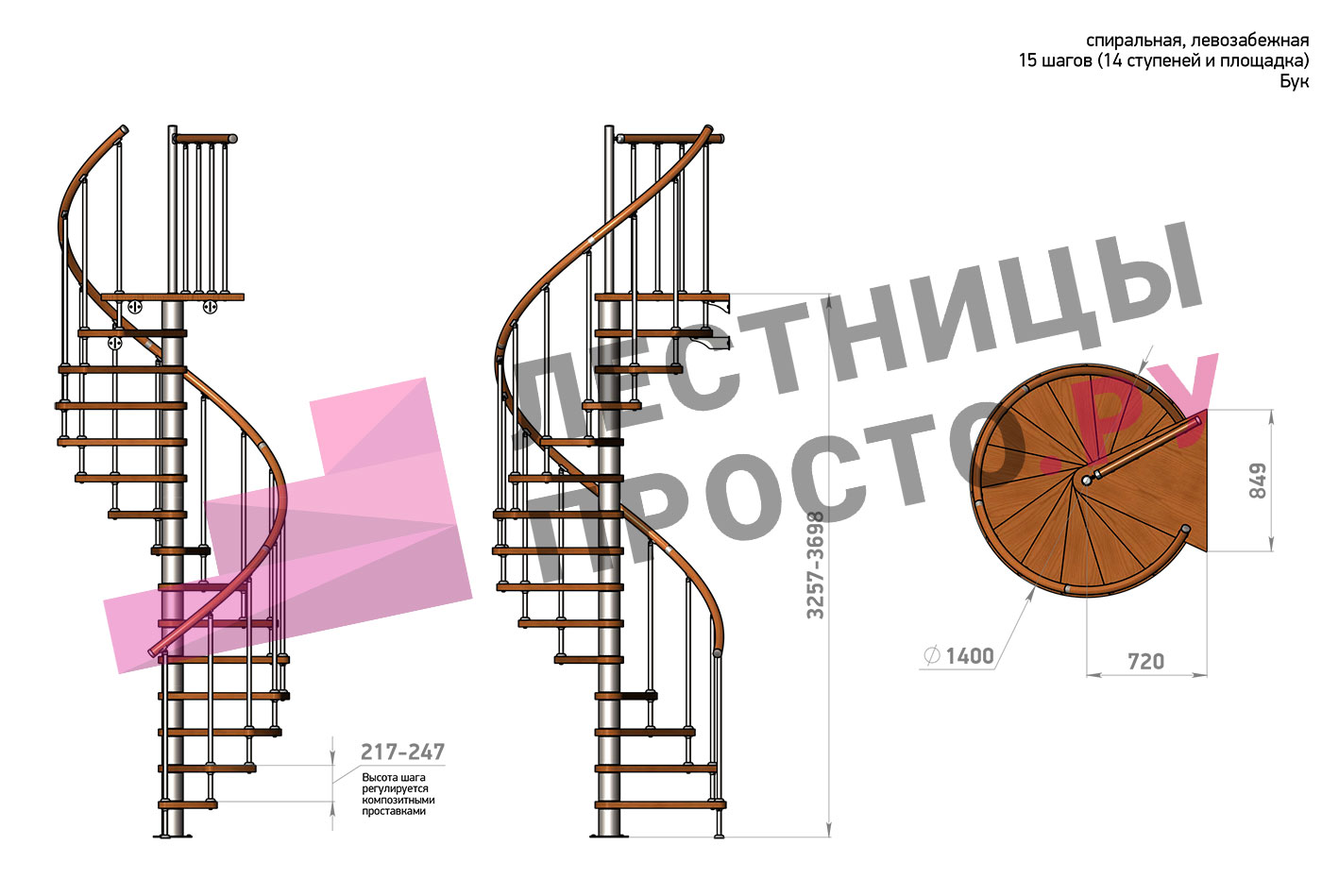 Высота лестницы 3257 - 3610 (14 ступеней) мм