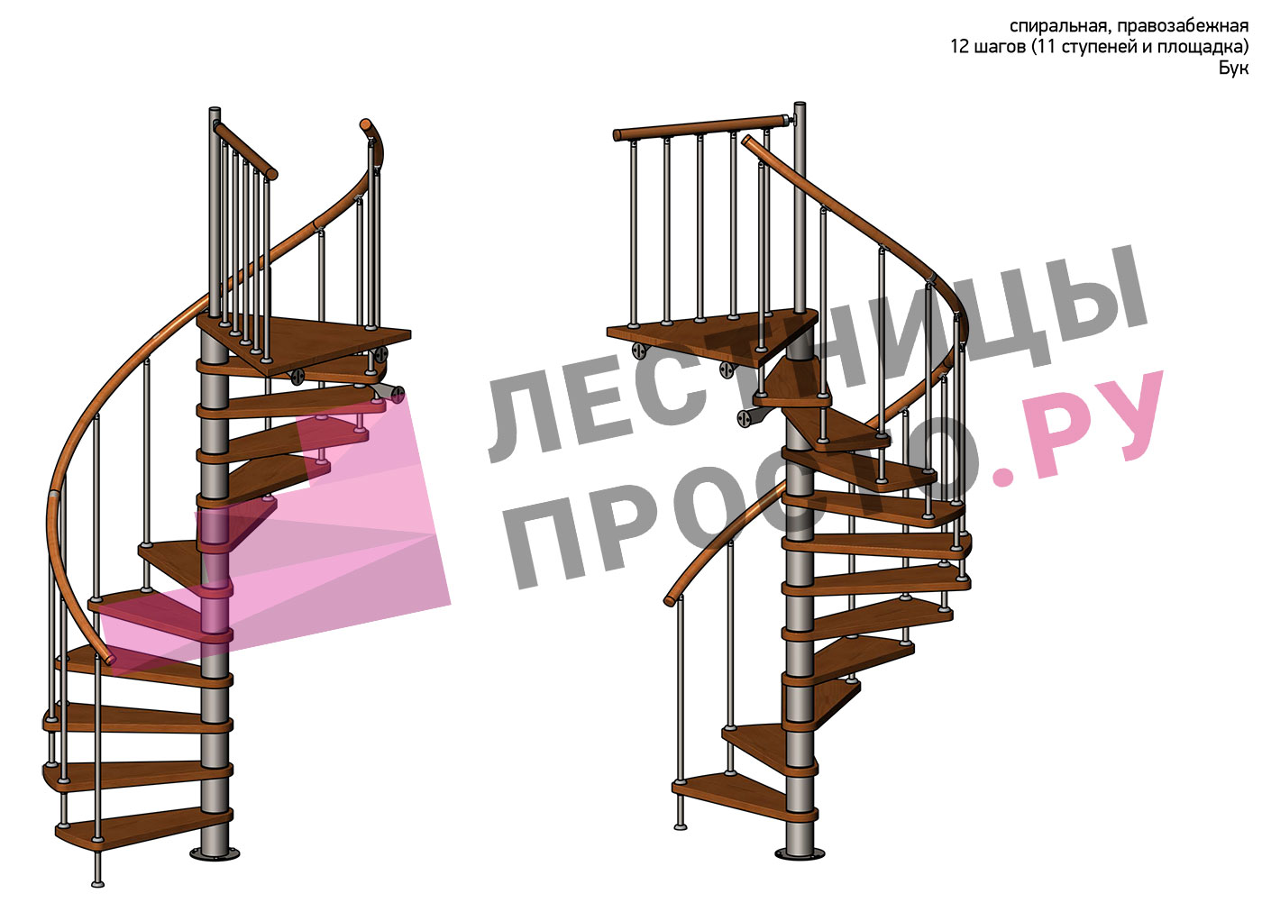 Решение о направлении поворота принимается при сборке лестницы - универсальная конструкция позволяет собрать правозабежную и левозабежную лестницы. Высота ступеней регулируется с шагом 3 мм. в пределах 217-247 мм., благодаря чему, лестница прекрасно подгоняется под необходимую высоту.
