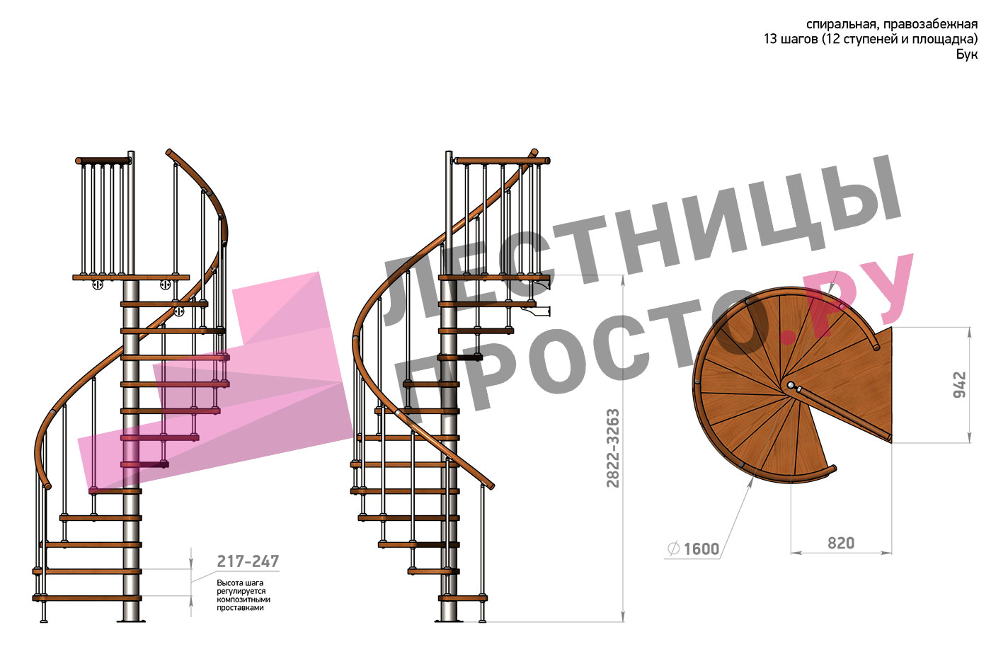 Высота лестницы 2822 - 3263 (12 ступеней) мм
