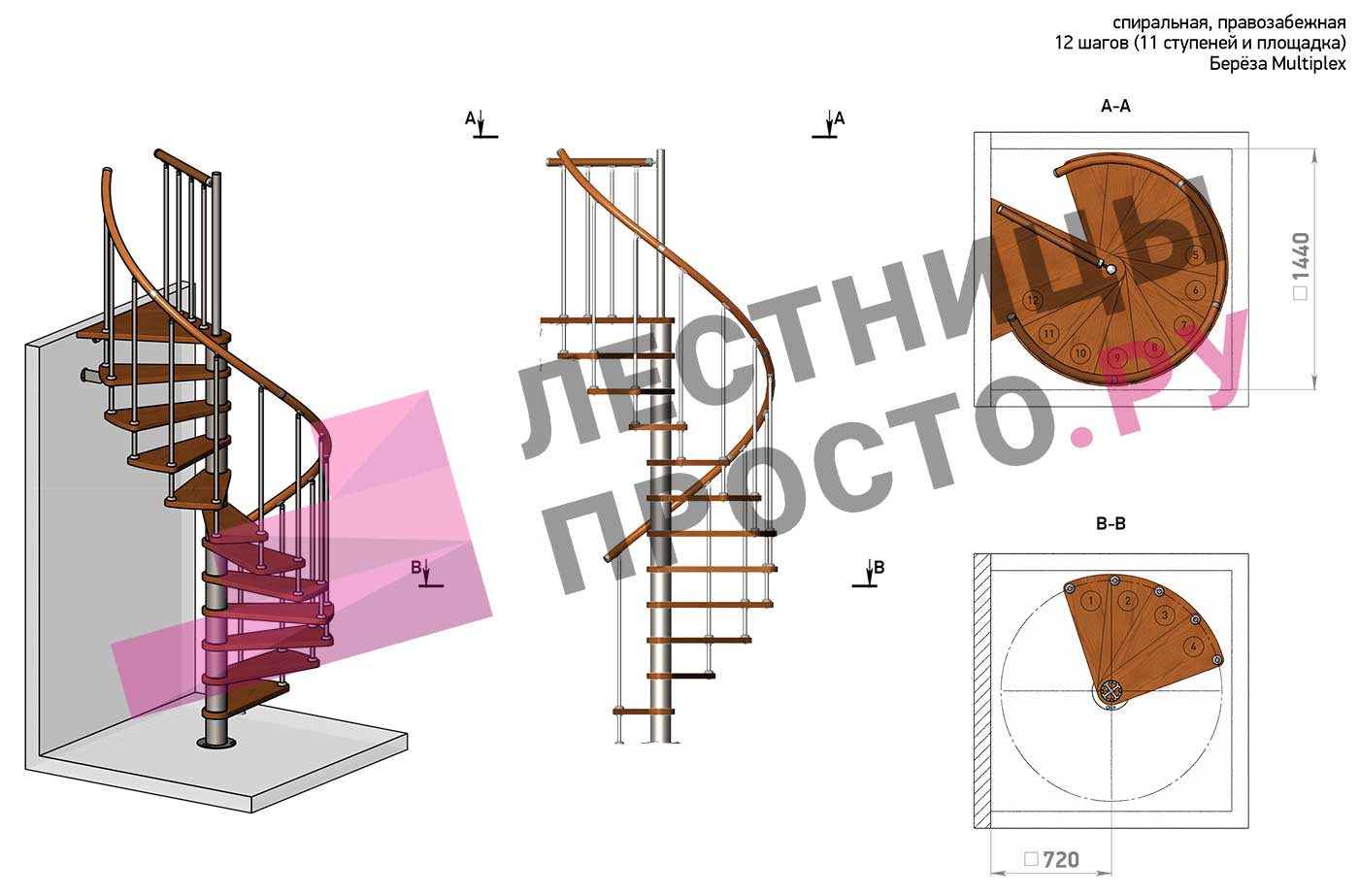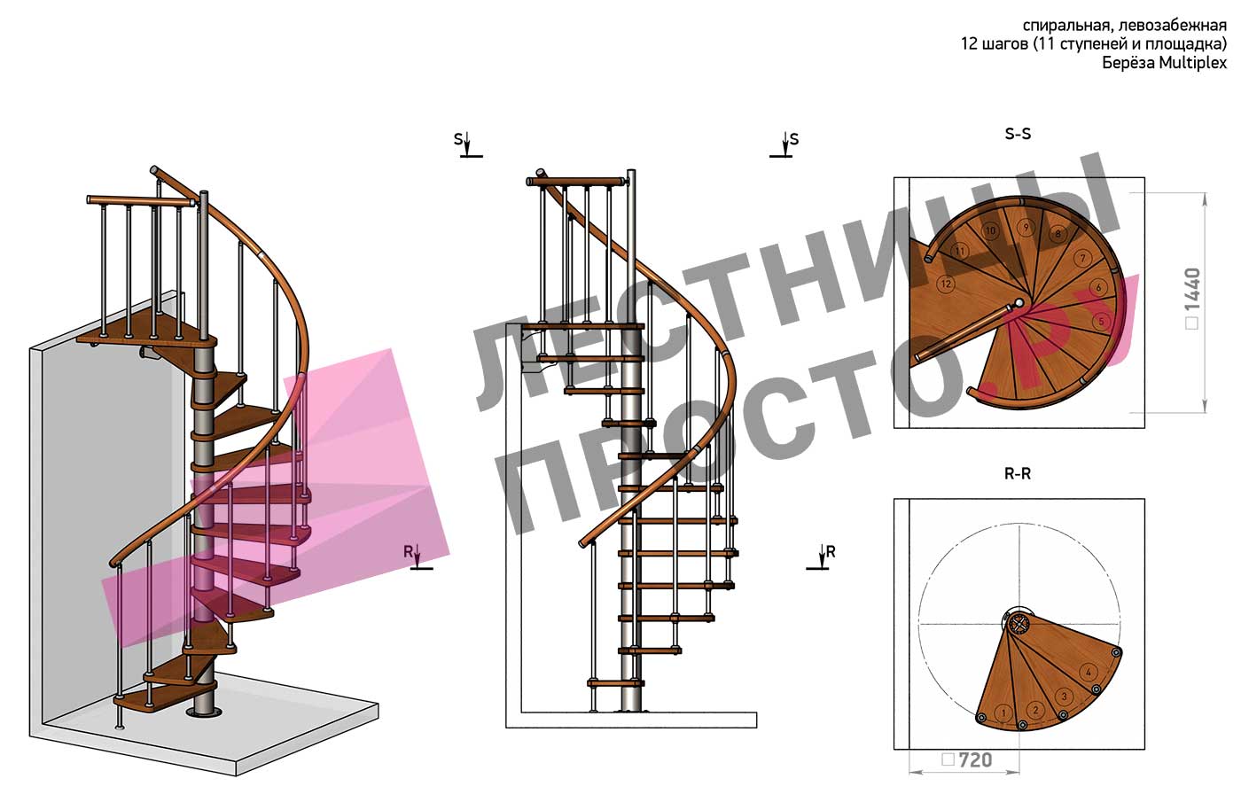 Высота лестницы 2545 - 2898 (11 ступеней) мм