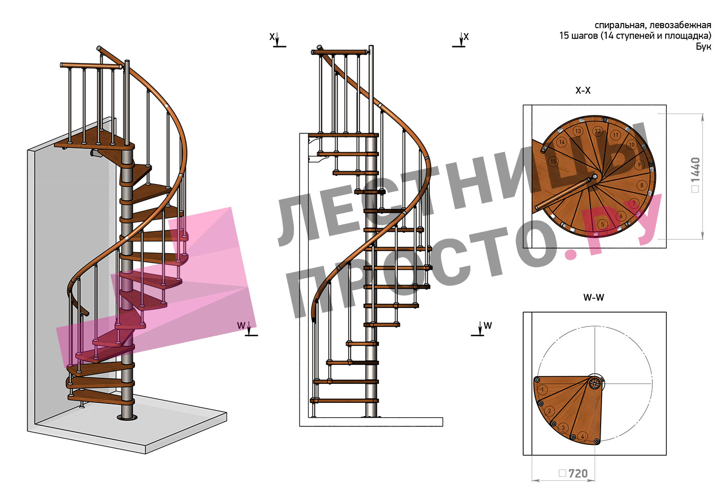 Высота лестницы 3257 - 3610 (14 ступеней) мм
