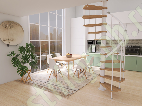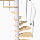 Лаконичная малогабаритная стильная винтовая модульная лестница с белым каркасом.