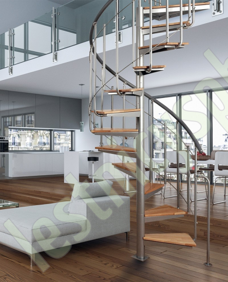 | Винтовая лестница Solo vertical серебро, натуральный бук |