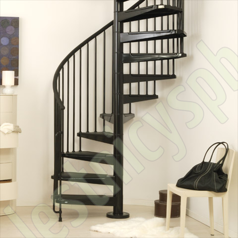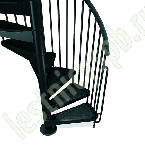 Отделка лестницы всегда в черном цвете. Перила из полиуретана с алюминиевым сердечником черного цвета, как и износостойкие нескользящие панели на ступенях.