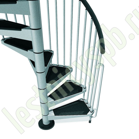 Отделка лестницы всегда в черном цвете. Перила из полиуретана с алюминиевым сердечником черного цвета, как и износостойкие нескользящие панели на ступенях.